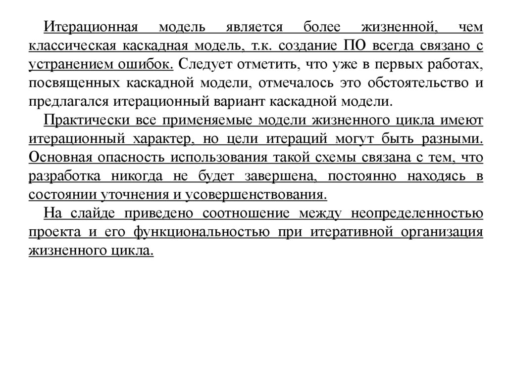 Итерационная модель является более жизненной, чемклассическая каскадная модель, т.к. создание ПО всегда связано с