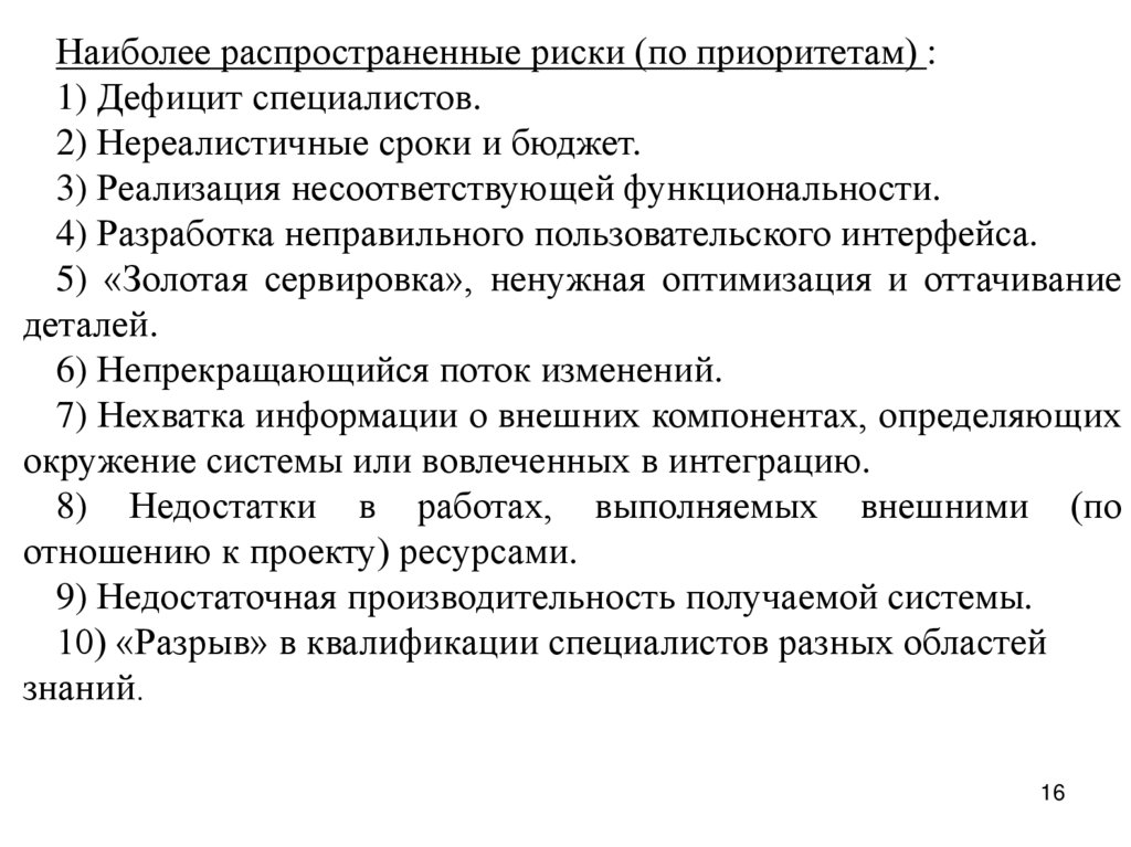 больших проблем в проекте. Не допускается сверхурочная работа 2 недели
