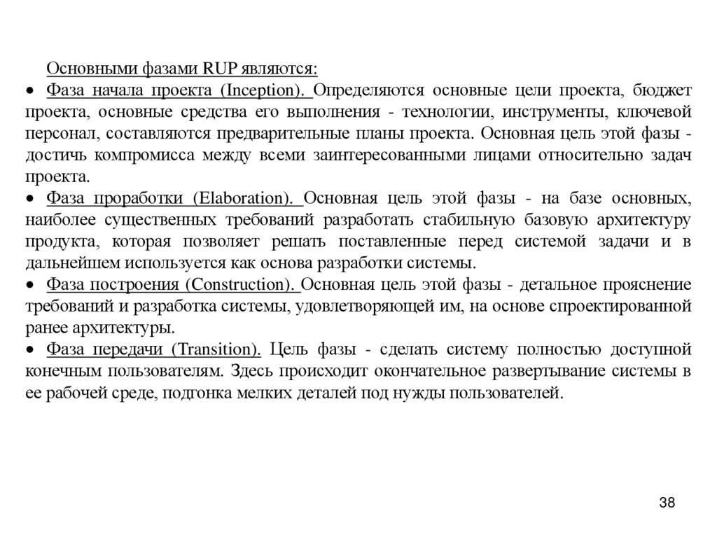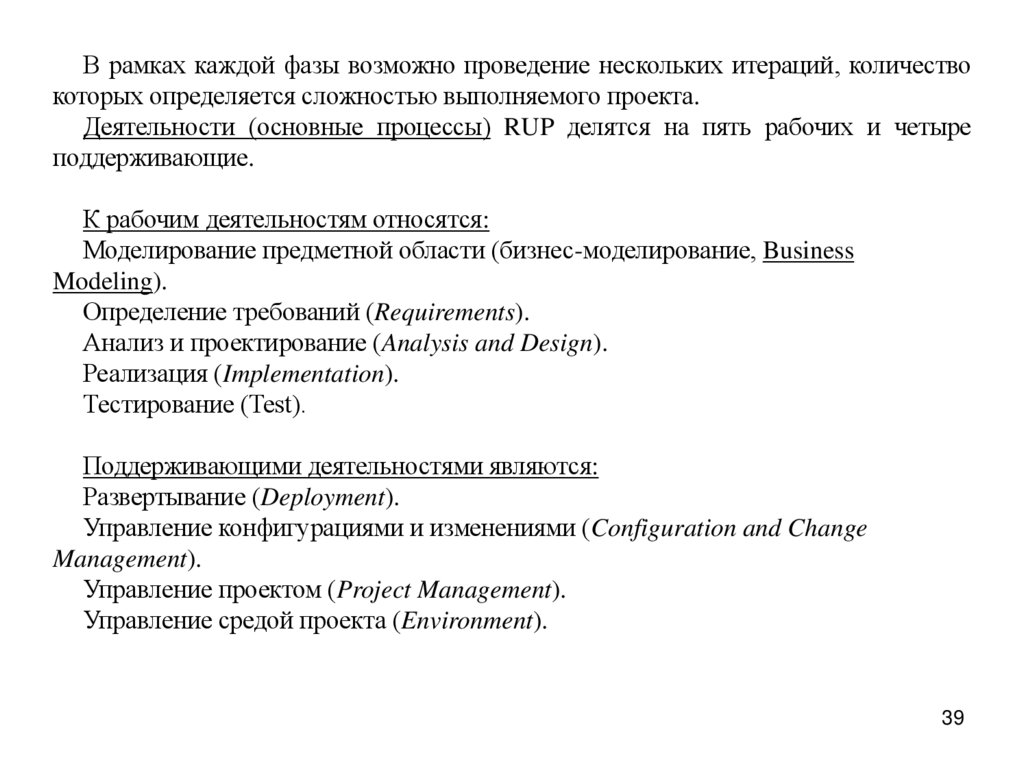 В рамках каждой фазы возможно проведение нескольких итераций, количествокоторых определяется сложностью выполняемого проекта.