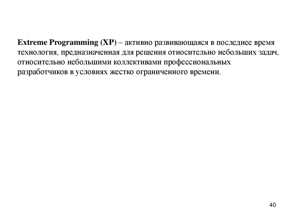 Extreme Programming (XP) – активно развивающаяся в последнее времятехнология, предназначенная для решения относительно небольших задач,