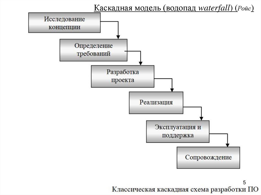 Каскадная модель (водопад waterfall) (Ройс)Каскадная схема разработки ПО