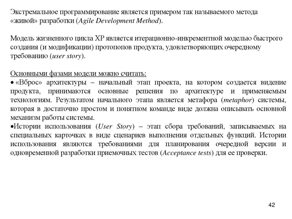 Экстремальное программирование является примером так называемого метода«живой» разработки (Agile Development Method).