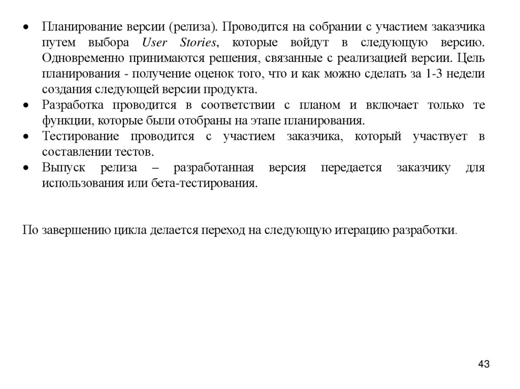 По завершению цикла делается переход на следующую итерацию разработки.