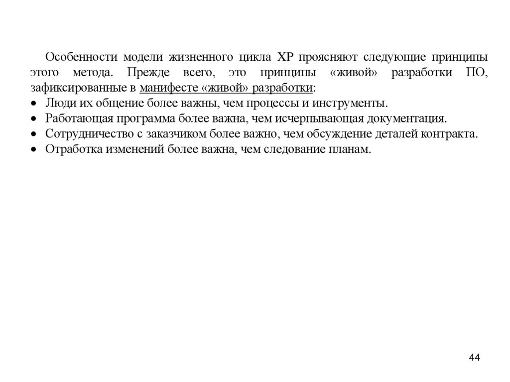 Особенности модели жизненного цикла XP проясняют следующие принципыэтого метода. Прежде всего, это принципы «живой» разработки ПО,