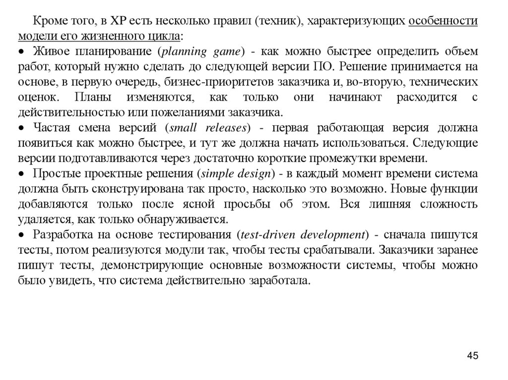 Кроме того, в XP есть несколько правил (техник), характеризующих особенностимодели его жизненного цикла: