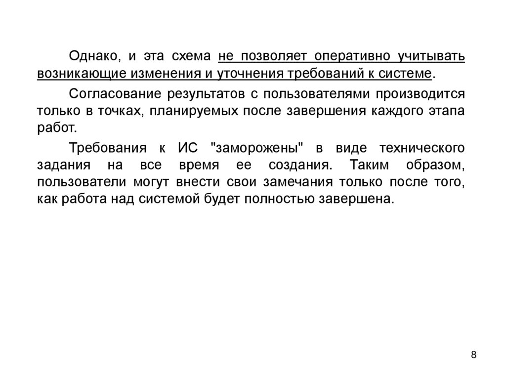 Однако, и эта схема не позволяет оперативно учитыватьвозникающие изменения и уточнения требований к системе.