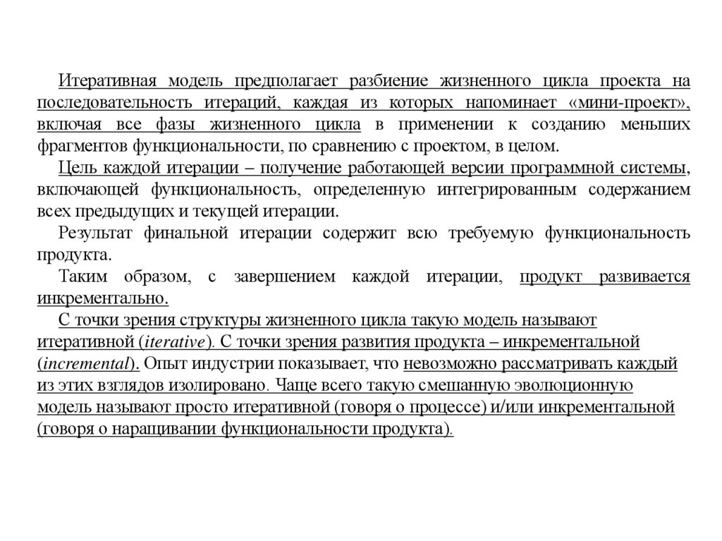 итеративной (iterative). С точки зрения развития продукта – инкрементальной