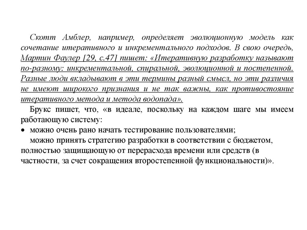 Скотт Амблер, например, определяет эволюционную модель каксочетание итеративного и инкрементального подходов. В свою очередь,