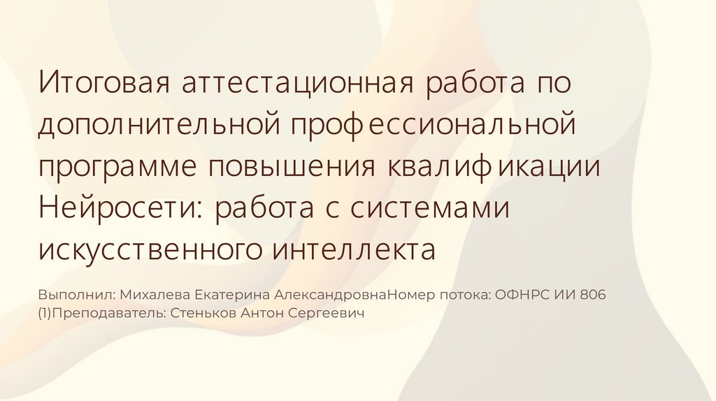 Выполнил: Михалева Екатерина АлександровнаНомер потока: ОФНРС ИИ 806