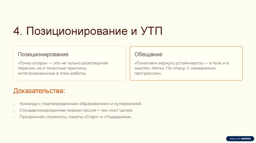 элементами телесных практик и визуальным мотивом «верни себе опору» формирует доверие и интерес —