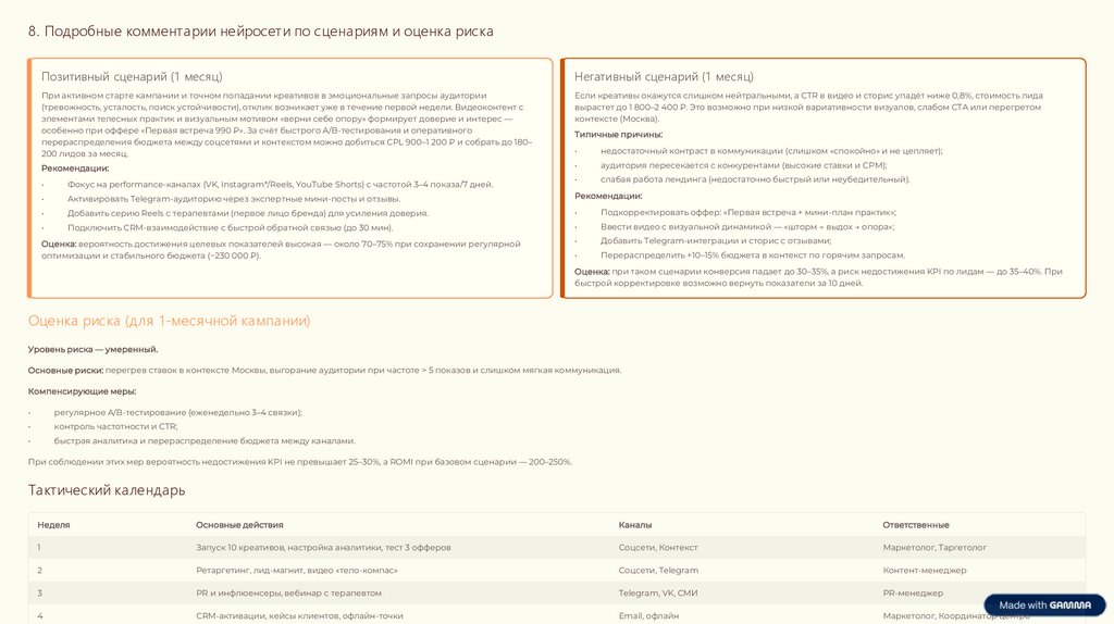 8. Подробные комментарии нейросети по сценариям и оценка рискаПозитивный сценарий (1 месяц)