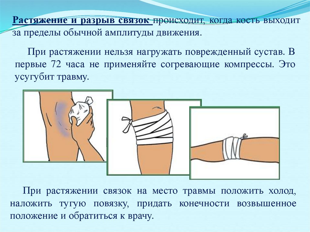 Растяжение и разрыв связок происходит, когда кость выходитза пределы обычной амплитуды движения.