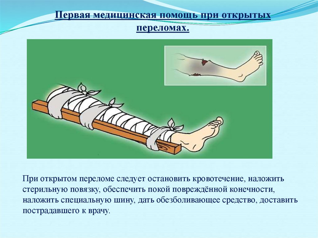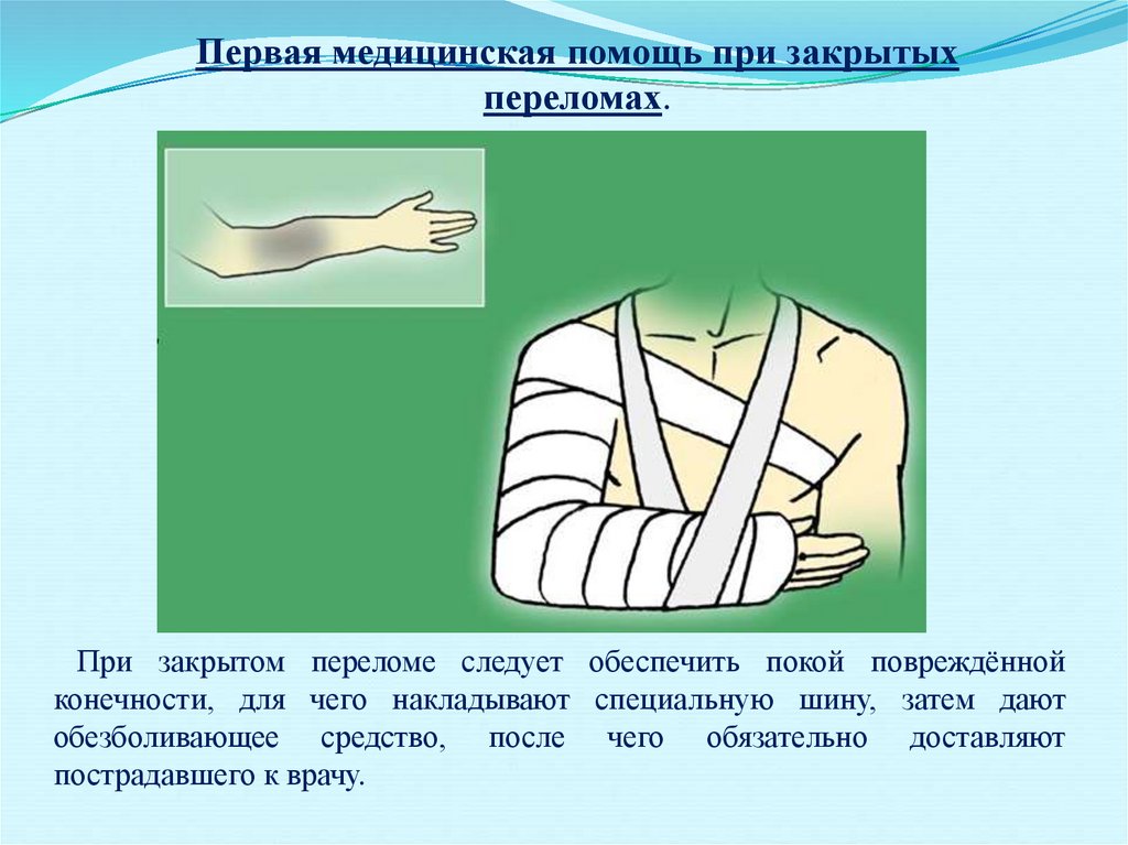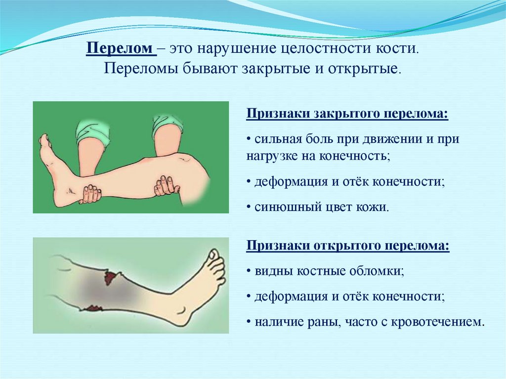 Перелом – это нарушение целостности кости.Переломы бывают закрытые и открытые.