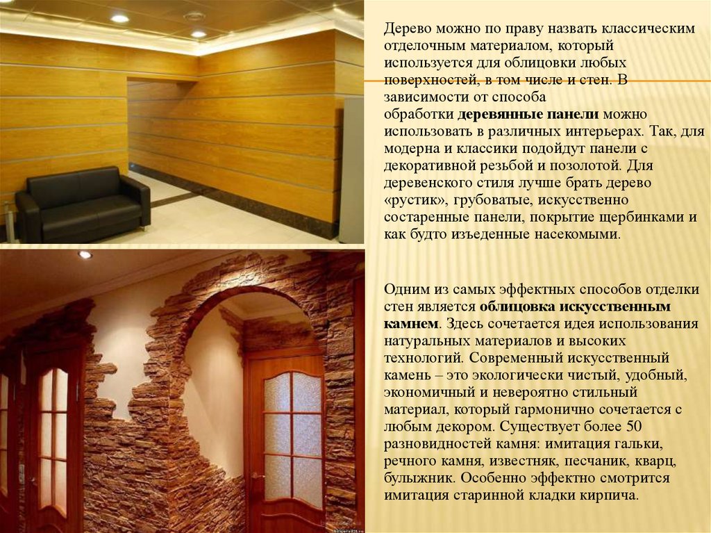стен является облицовка искусственным