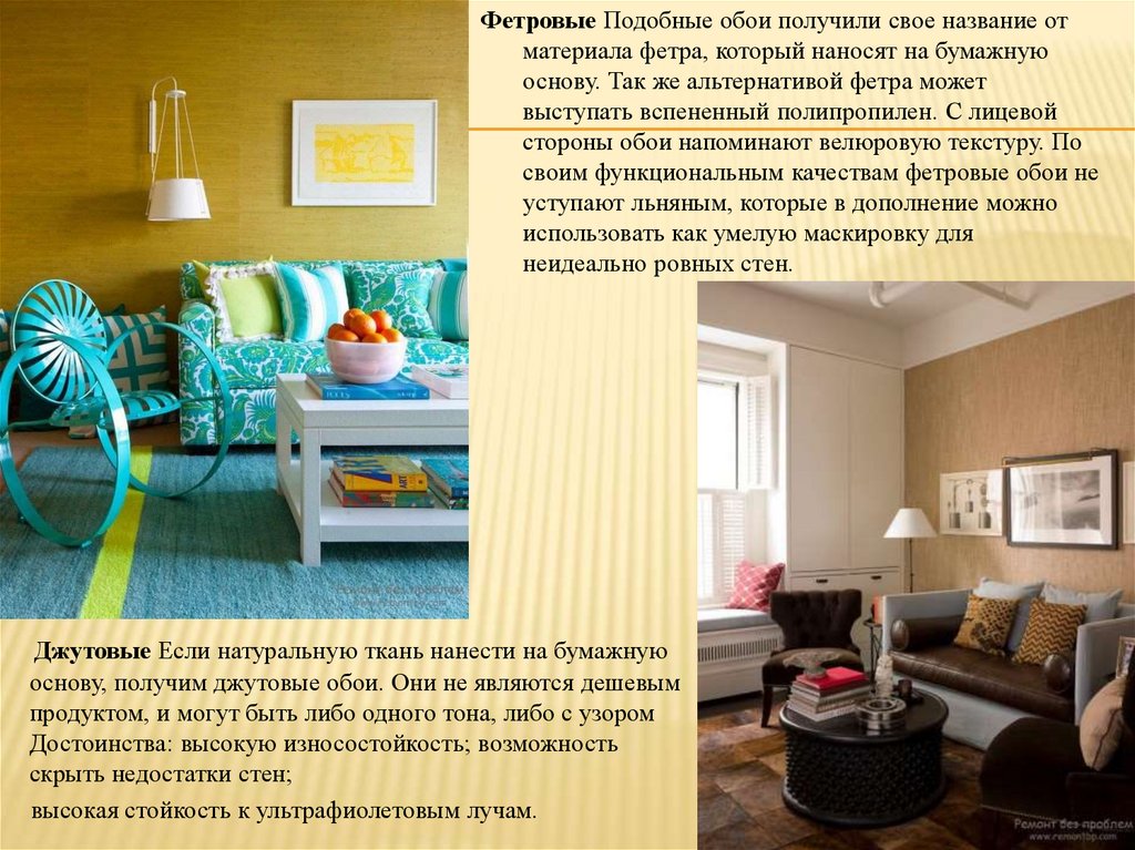 Фетровые Подобные обои получили свое название отматериала фетра, который наносят на бумажную