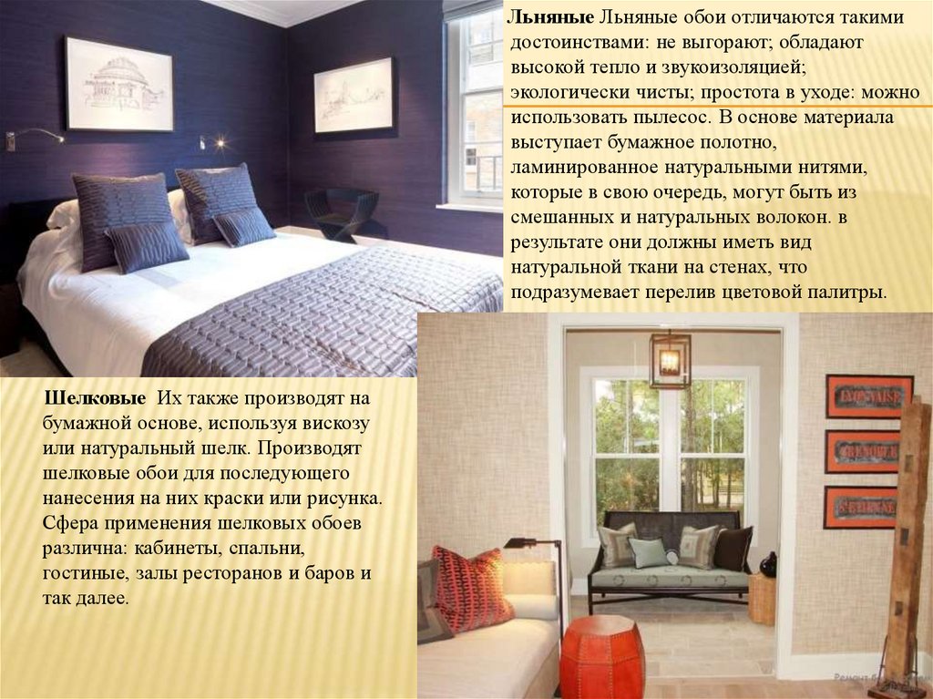 Виды текстильных обоев
