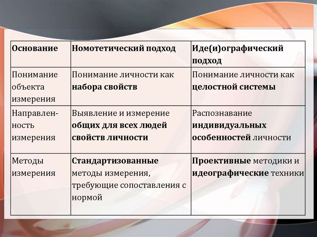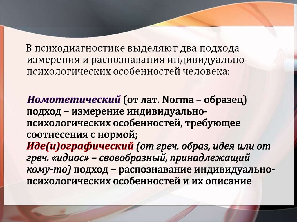 В психодиагностике выделяют два подходаизмерения и распознавания индивидуальнопсихологических особенностей человека: