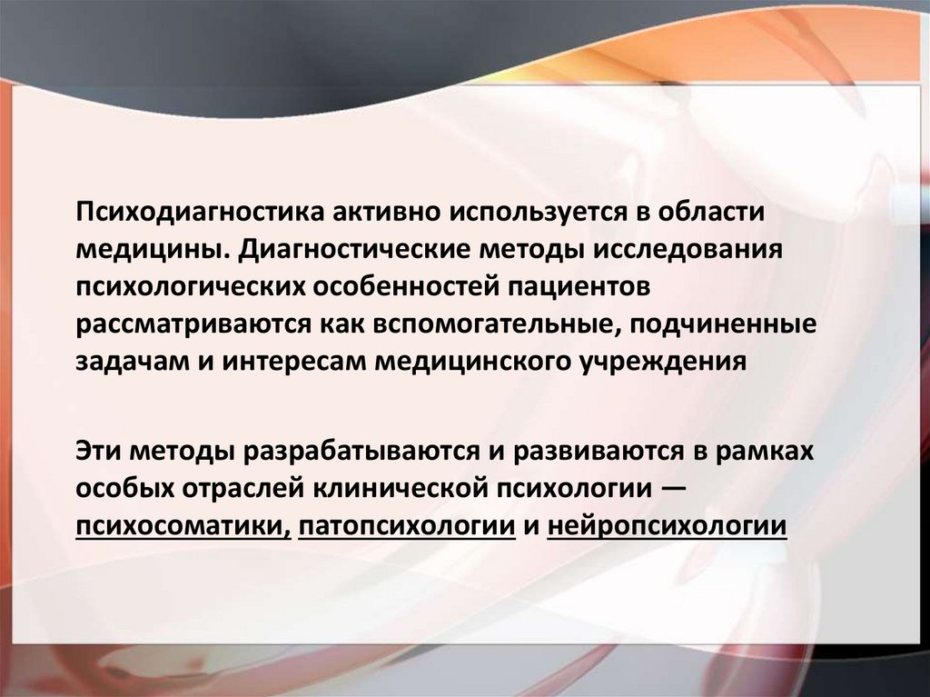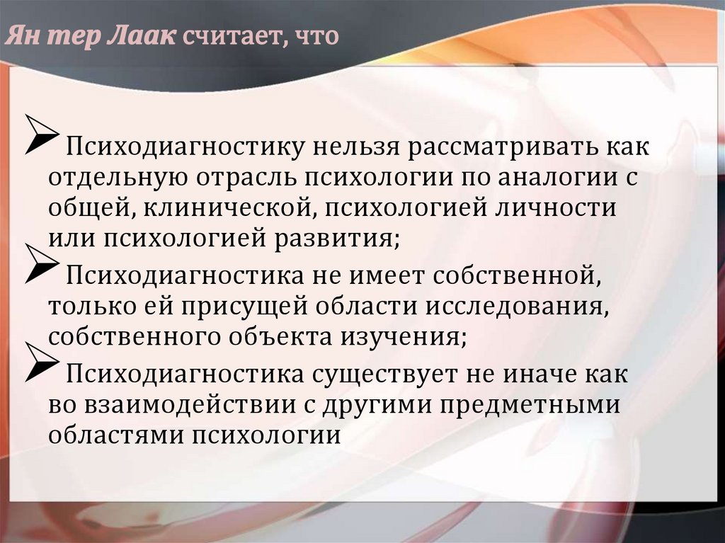 Психодиагностику нельзя рассматривать какотдельную отрасль психологии по аналогии с