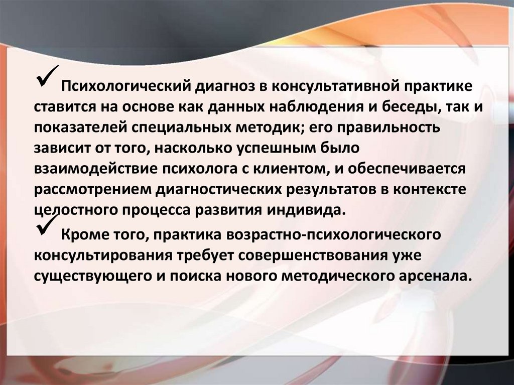 Психологический диагноз в консультативной практикеставится на основе как данных наблюдения и беседы, так и