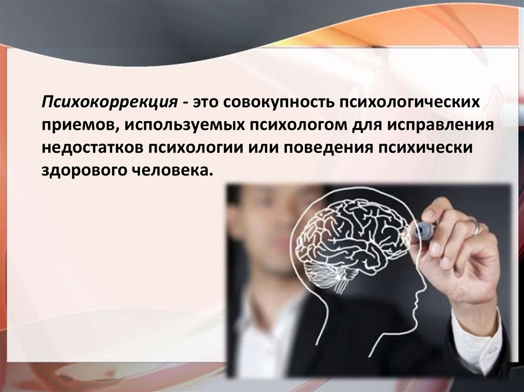 Психокоррекция - это совокупность психологическихприемов, используемых психологом для исправления