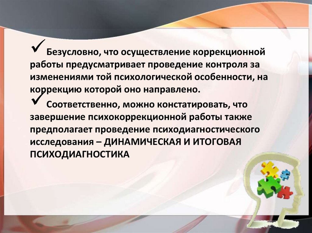 Безусловно, что осуществление коррекционнойработы предусматривает проведение контроля за