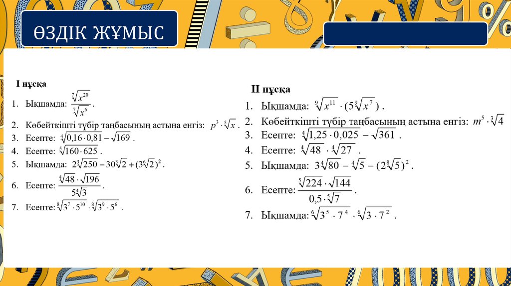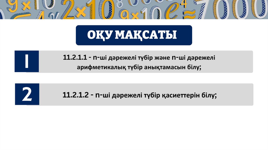 11.2.1.2 - n-ші дәрежелі түбір қасиеттерін білу;