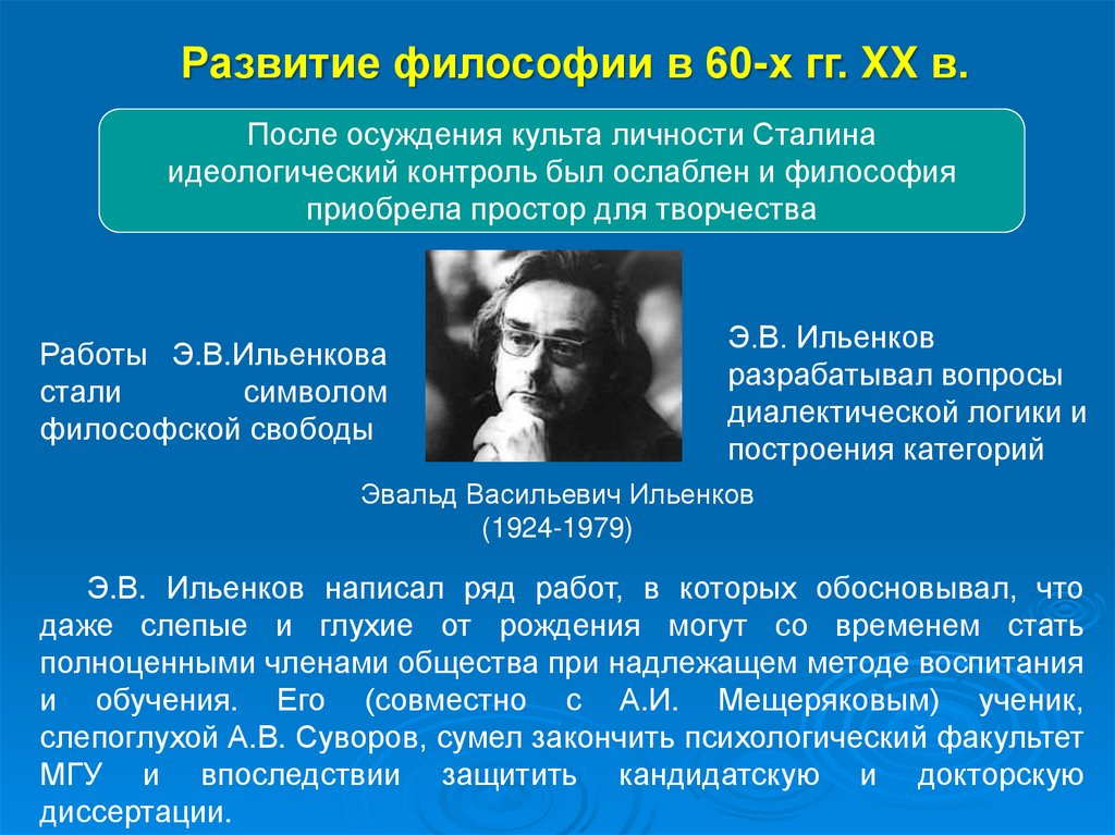 Развитие философии в 60-х гг. XX в.После осуждения культа личности Сталина