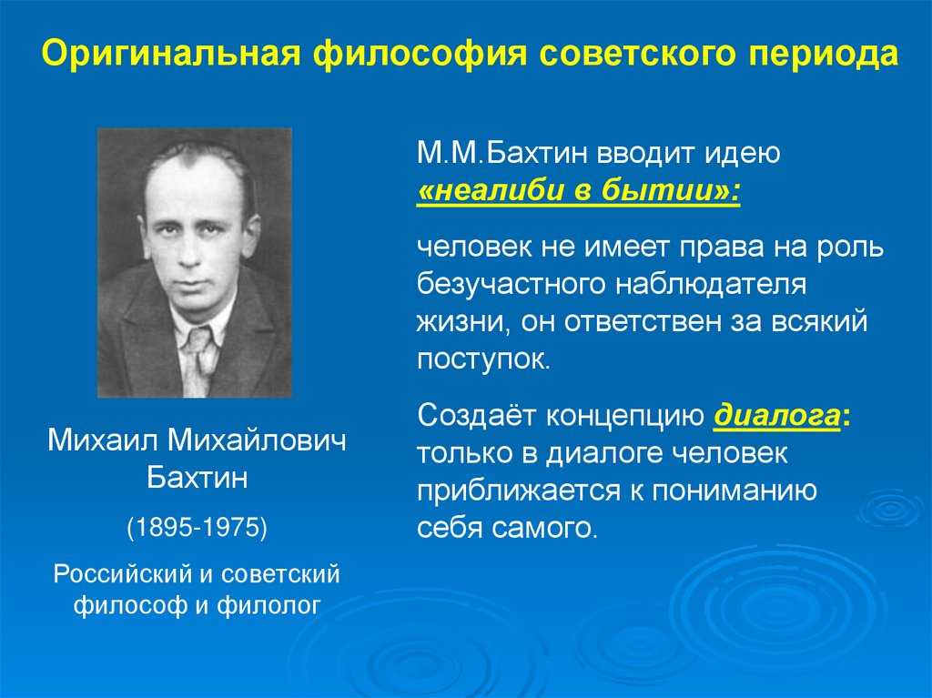 Оригинальная философия советского периодаМ.М.Бахтин вводит идею