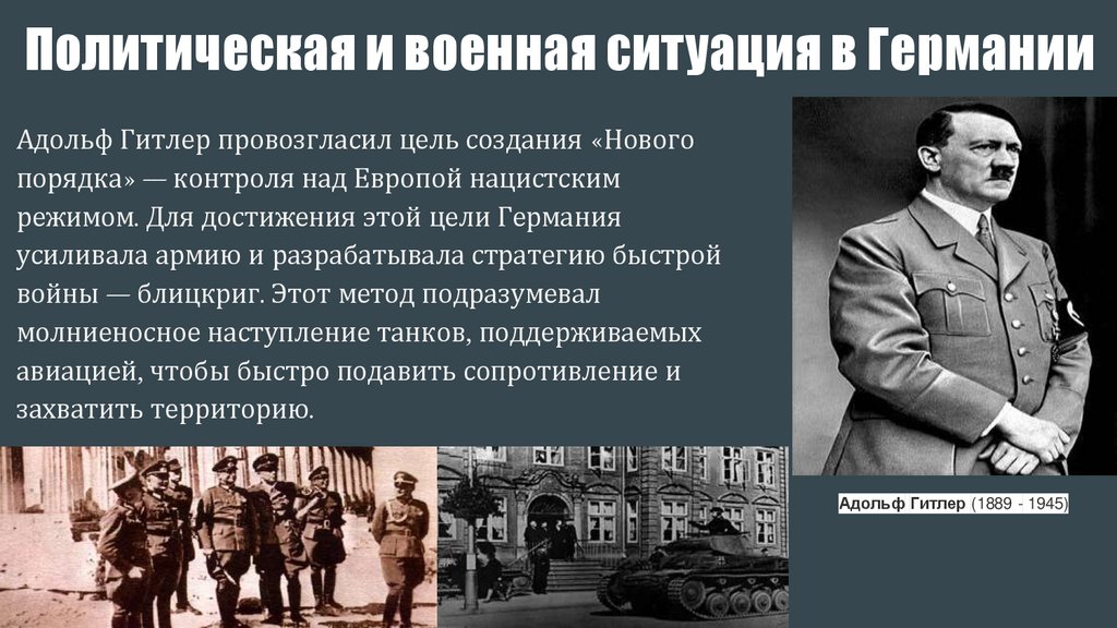 Политическая и военная ситуация в ГерманииАдольф Гитлер провозгласил цель создания «Нового