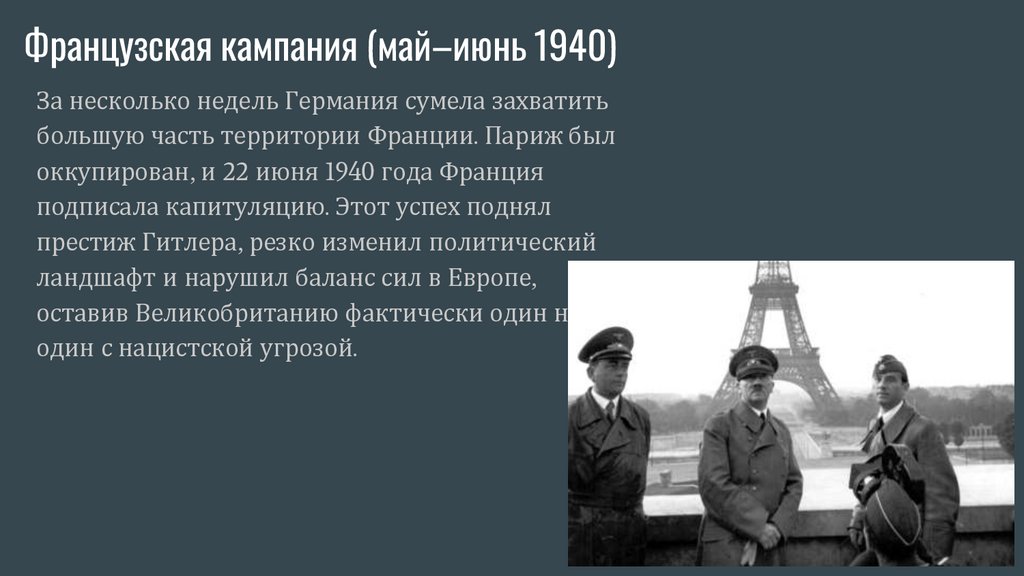 Французская кампания (май–июнь 1940)За несколько недель Германия сумела захватить