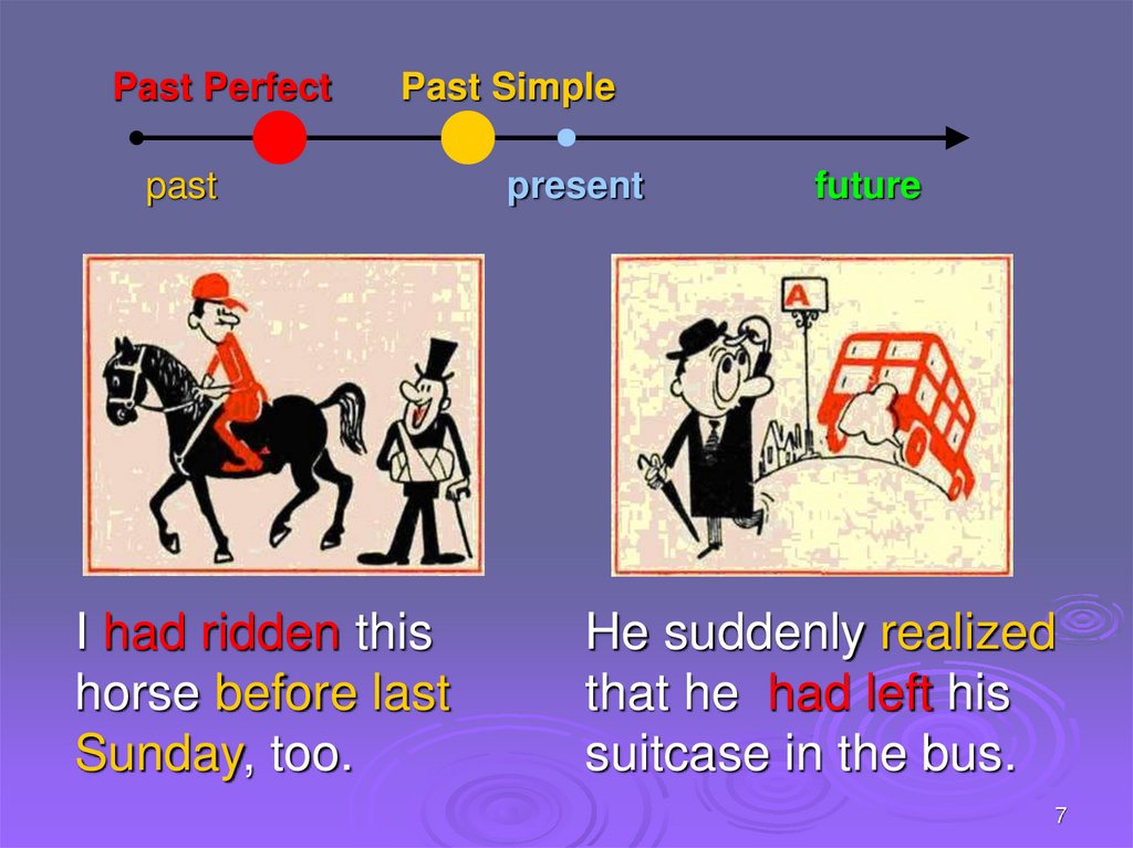 15. Глагол, обозначающий действие, которое нарушает последовательность, употребляется в Past Perfect.