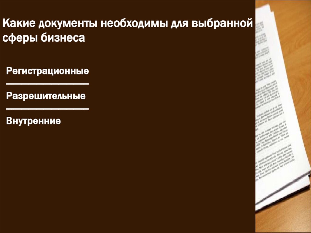 Какие документы необходимы для выбраннойсферы бизнеса