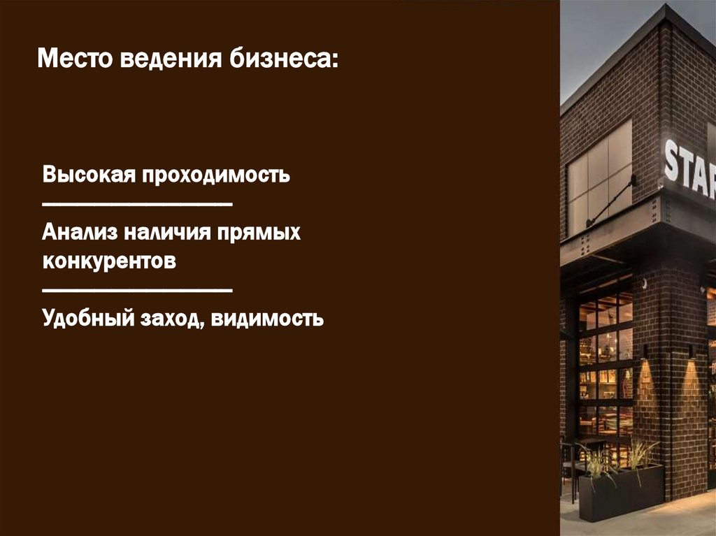 Место ведения бизнеса:Высокая проходимость
