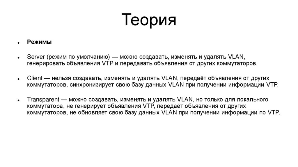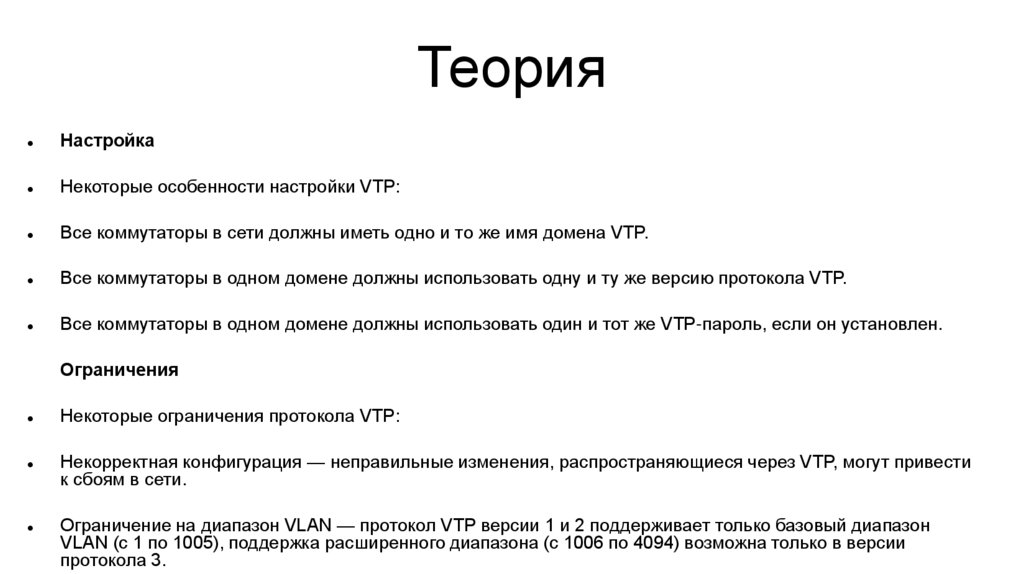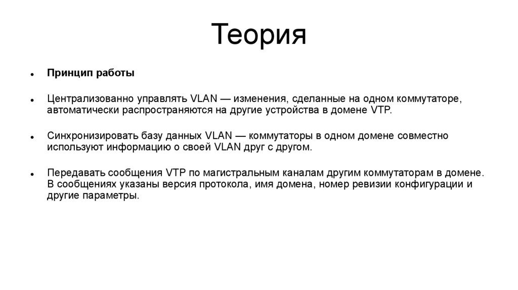 ТеорияVTP (VLAN Trunking Protocol) — проприетарный протокол компании