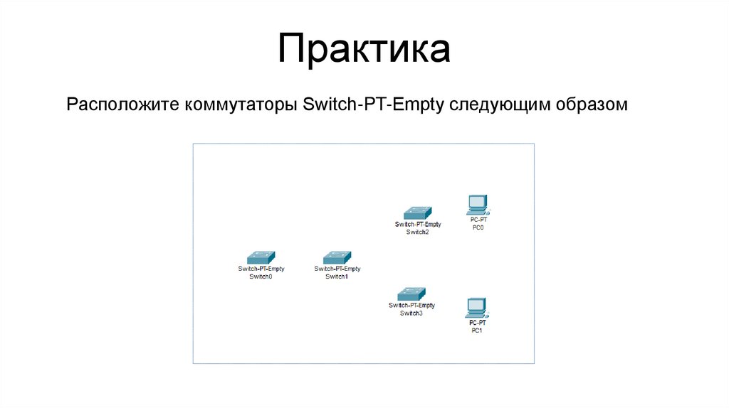 ПрактикаРасположите коммутаторы Switch-PT-Empty следующим образом