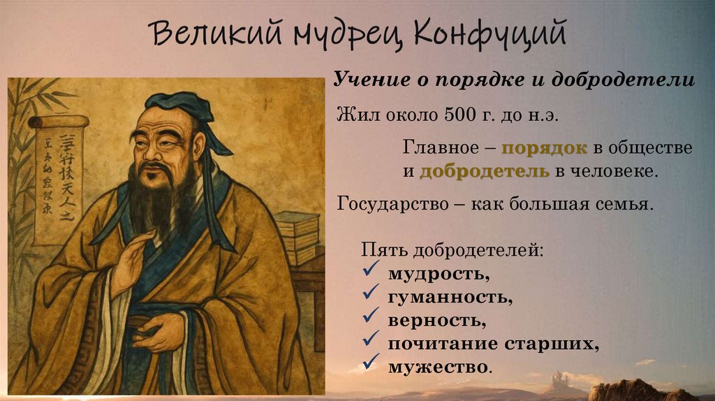 Учение о порядке и добродетелиЖил около 500 г. до н.э.