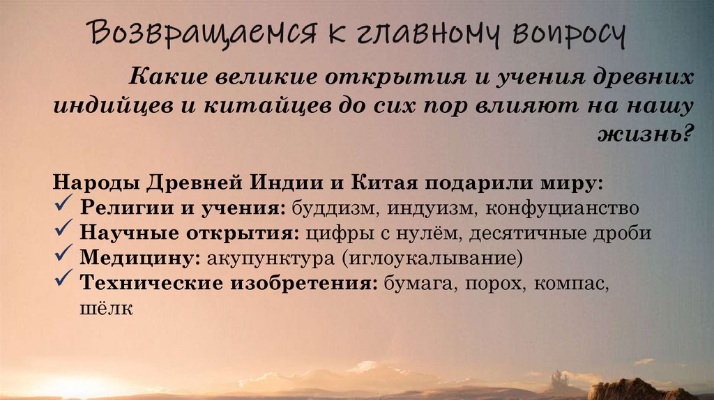 Какие великие открытия и учения древнихиндийцев и китайцев до сих пор влияют на нашу
