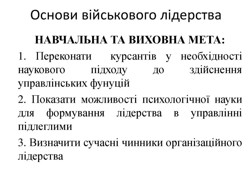 Основи військового лідерстваНАВЧАЛЬНА ТА ВИХОВНА МЕТА: