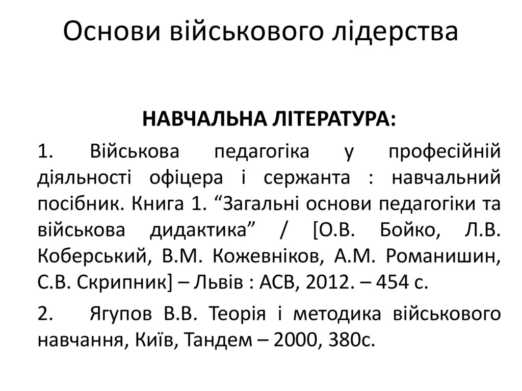 Основи військового лідерстваНАВЧАЛЬНА ЛІТЕРАТУРА: