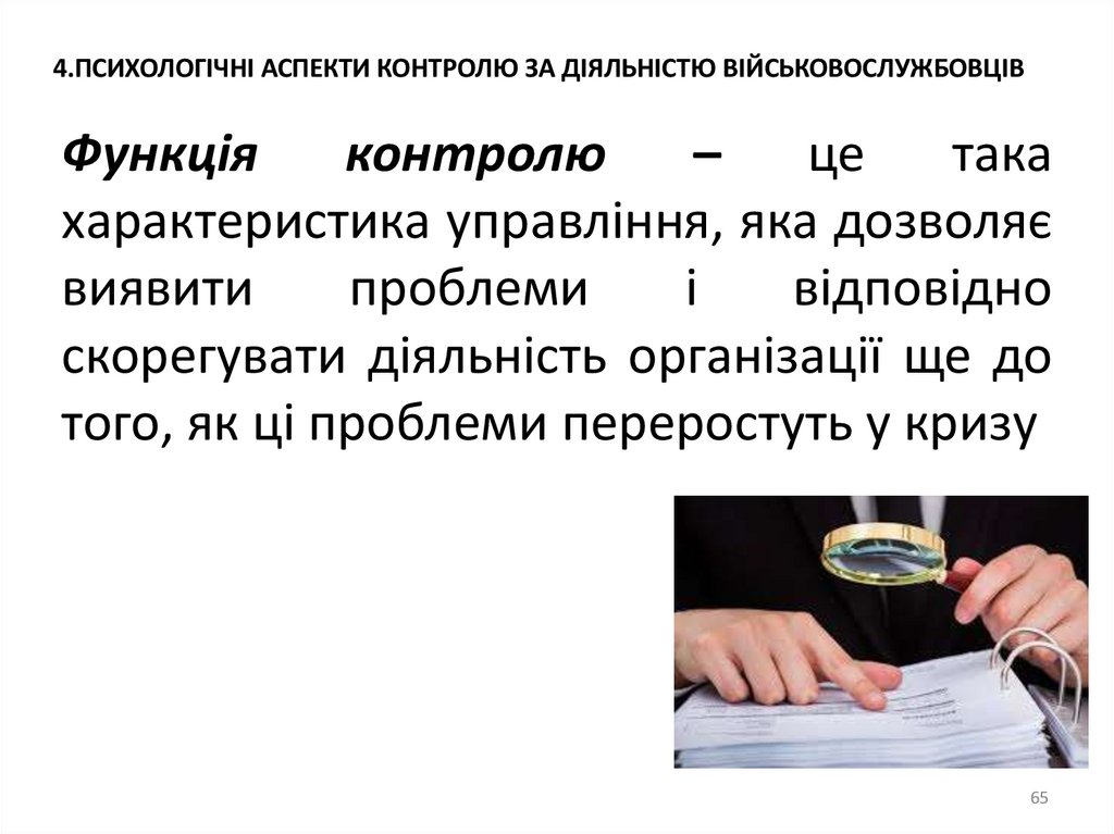 4.ПСИХОЛОГІЧНІ АСПЕКТИ КОНТРОЛЮ ЗА ДІЯЛЬНІСТЮ ВІЙСЬКОВОСЛУЖБОВЦІВФункція