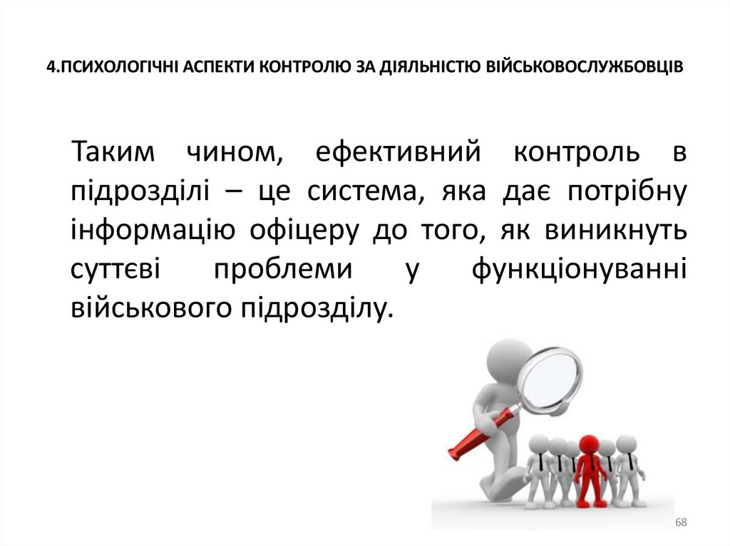 4.ПСИХОЛОГІЧНІ АСПЕКТИ КОНТРОЛЮ ЗА ДІЯЛЬНІСТЮ ВІЙСЬКОВОСЛУЖБОВЦІВТаким чином, ефективний контроль в