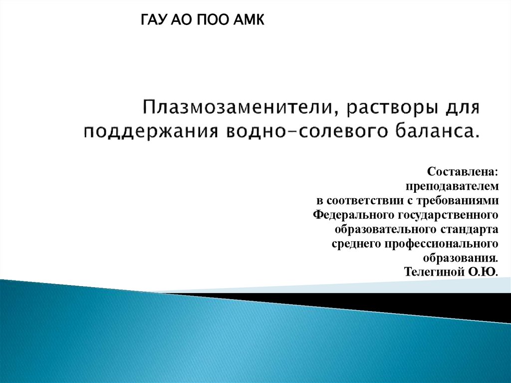 Плазмозаменители, растворы для поддержания водно-солевого баланса.Средства парантерального питания. Сальникова