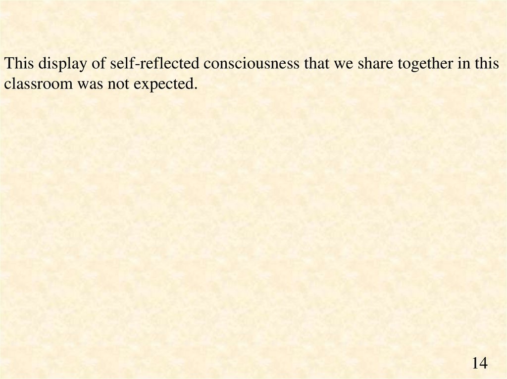 This display of self-reflected consciousness that we share together in thisclassroom was not expected.