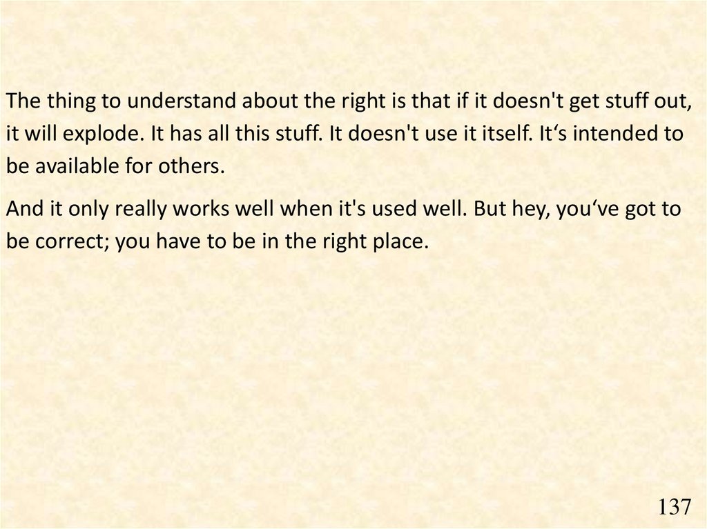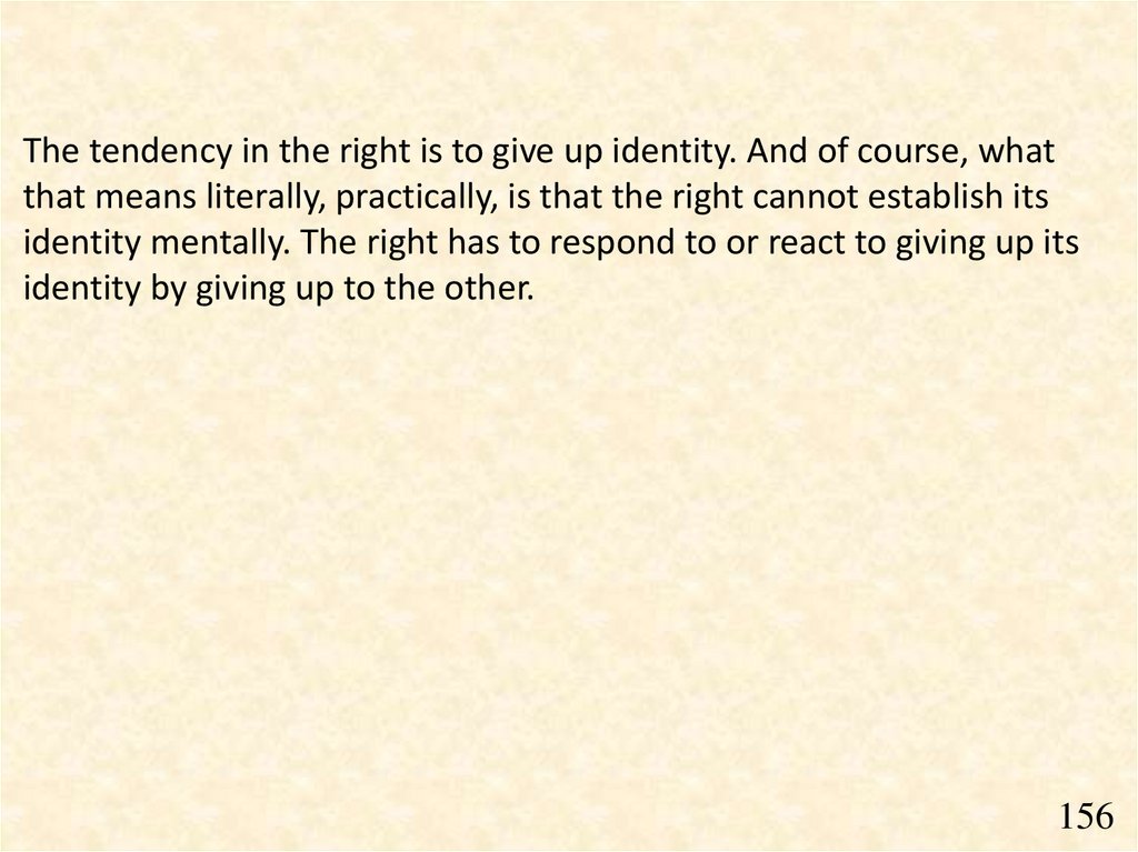 The tendency in the right is to give up identity. And of course, whatthat means literally, practically, is that the right cannot establish its