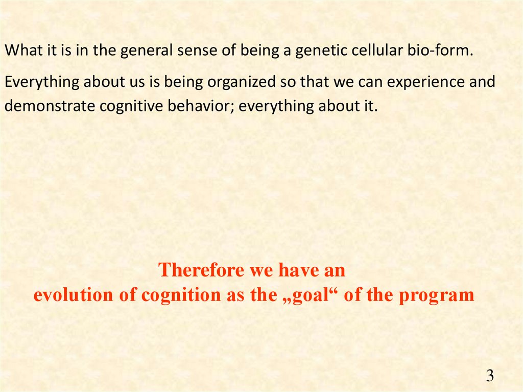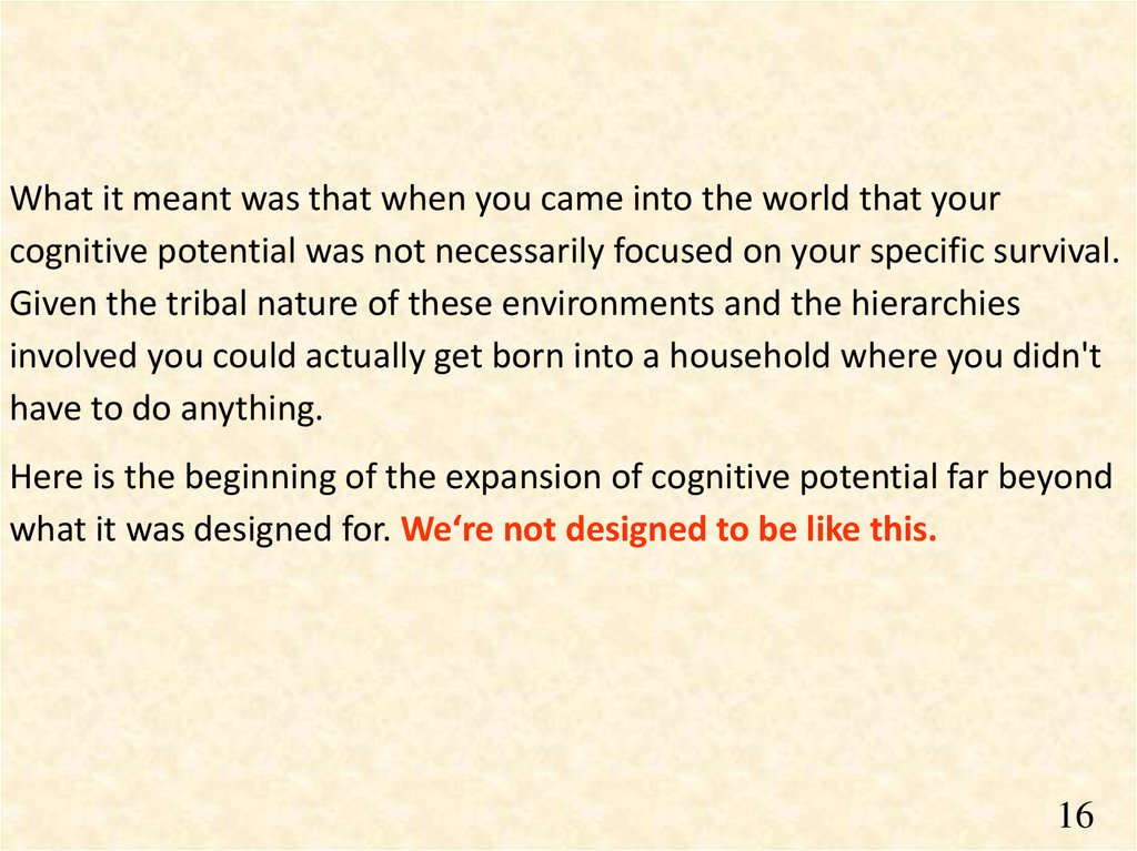 What it meant was that when you came into the world that yourcognitive potential was not necessarily focused on your specific survival.