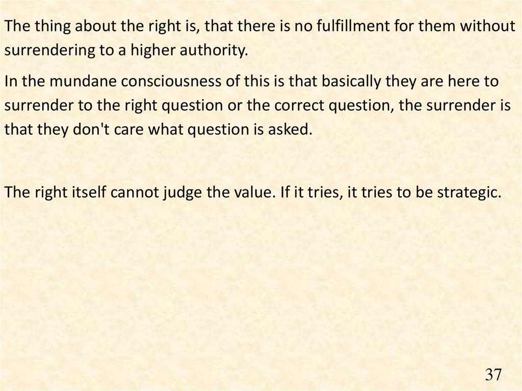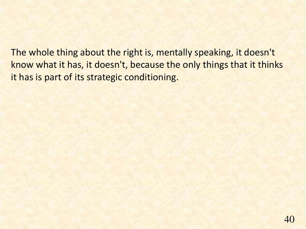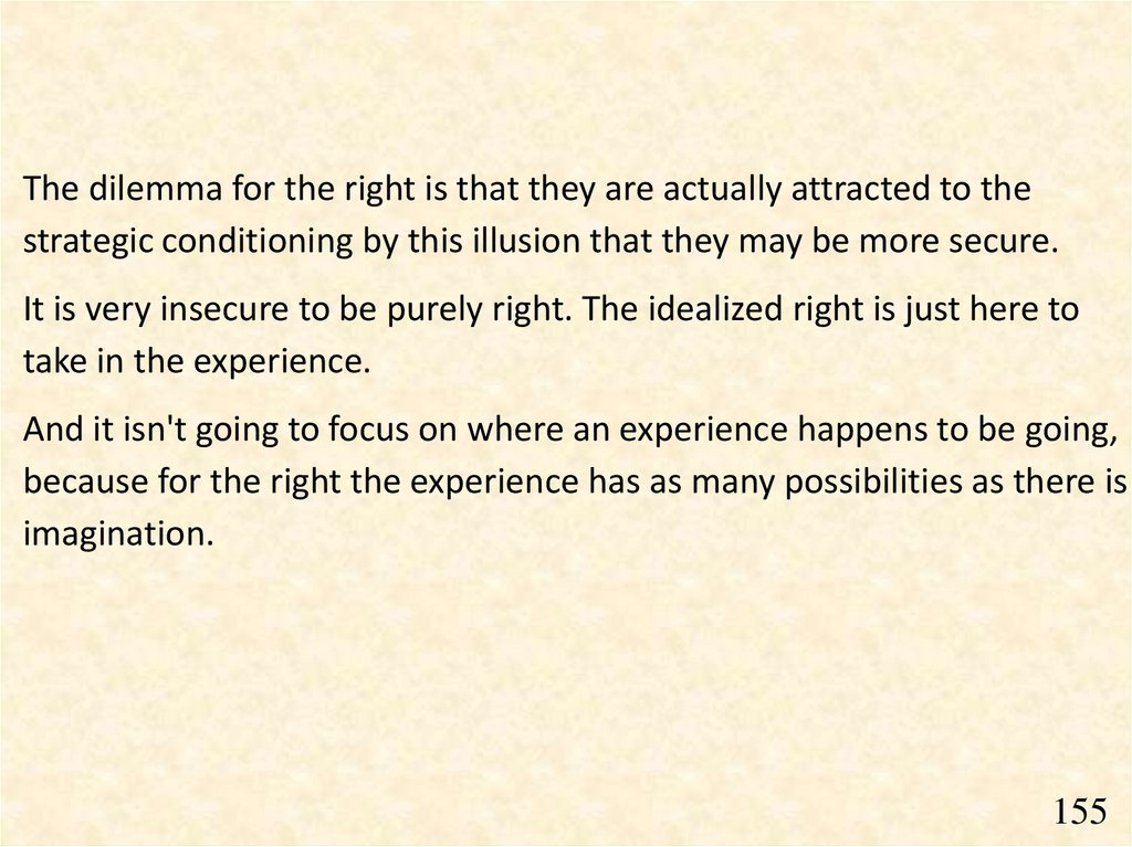 The dilemma for the right is that they are actually attracted to thestrategic conditioning by this illusion that they may be more secure.