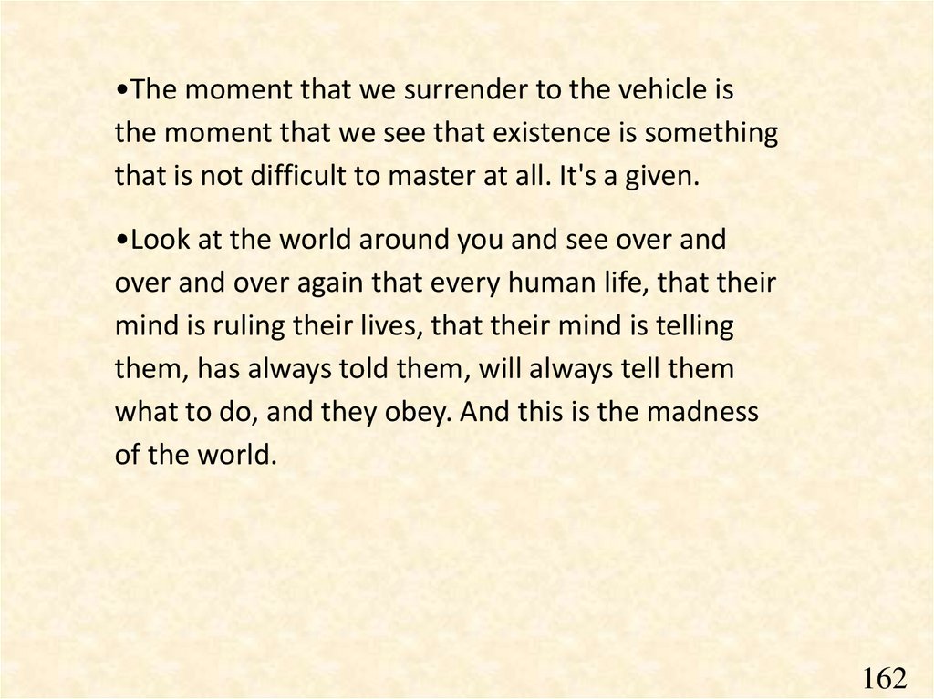 •The moment that we surrender to the vehicle isthe moment that we see that existence is something