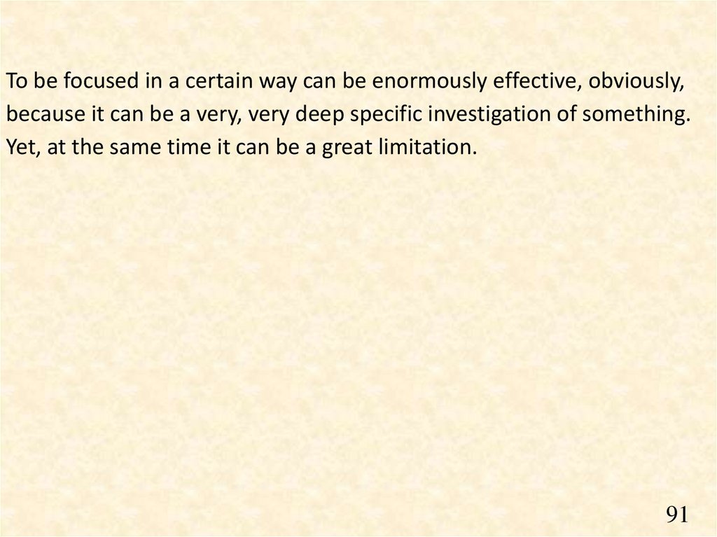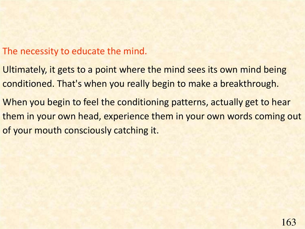 The necessity to educate the mind.Ultimately, it gets to a point where the mind sees its own mind being
