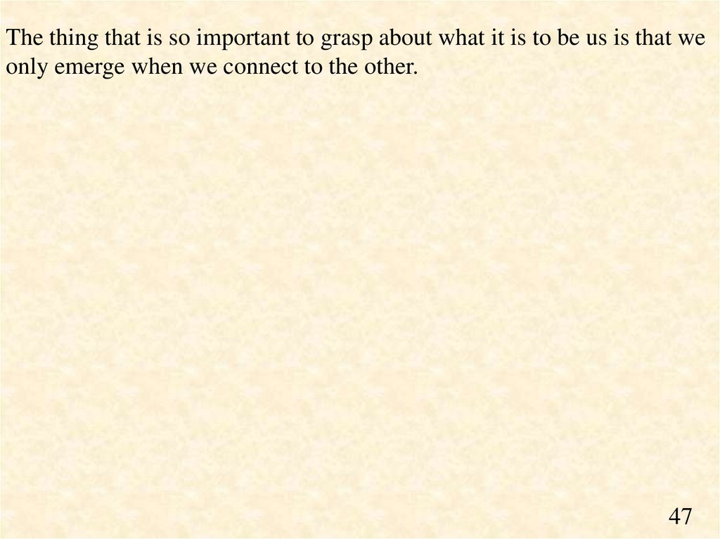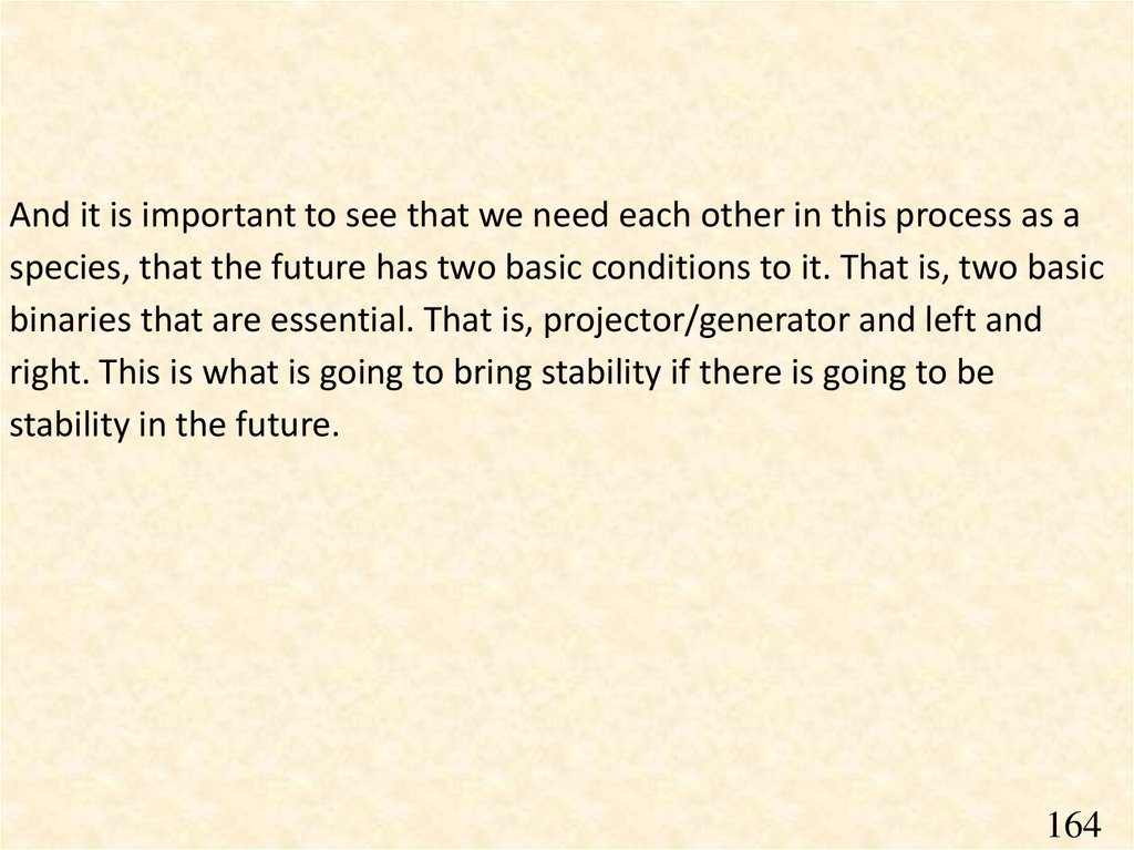 And it is important to see that we need each other in this process as aspecies, that the future has two basic conditions to it. That is, two basic