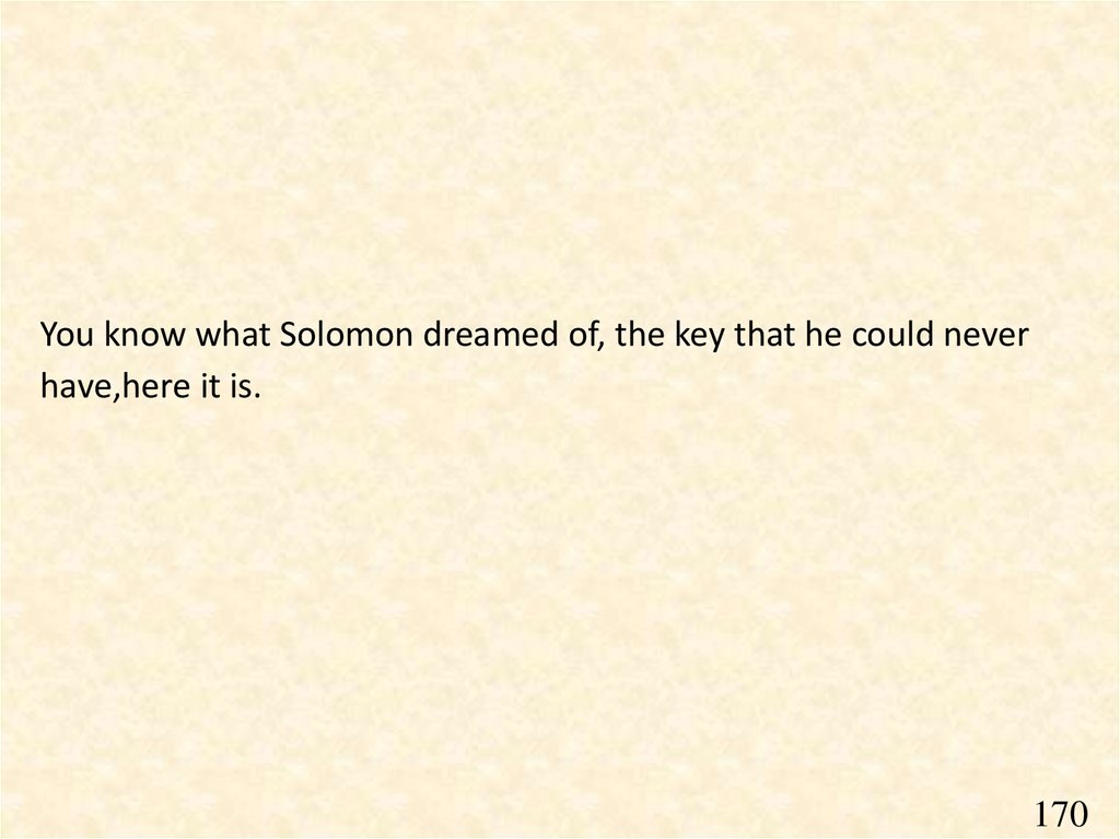 You know what Solomon dreamed of, the key that he could neverhave,here it is.